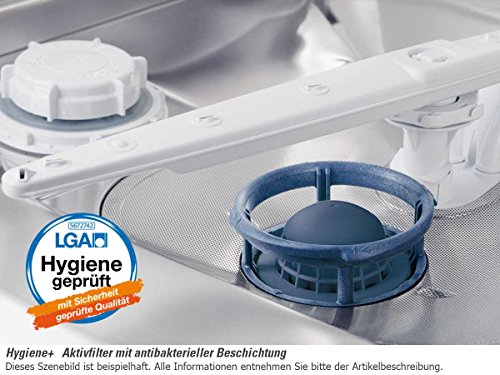 - Flüsterleise ab nur 39 dB(A) im Nachtspülprogramm – nur 42 dB(A) – IEC 704 im Normalprogramm