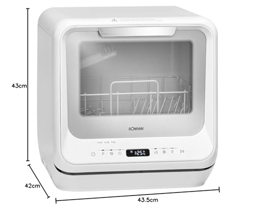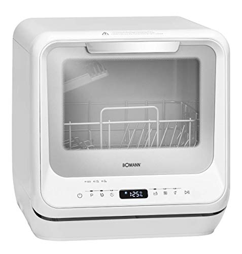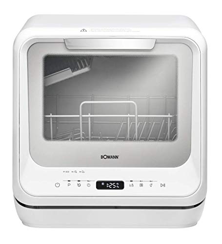 Bomann TSG 7402 Mini-Geschirrspüler, mit und ohne Wasseranschluss nutzbar, 5 Programme, 5L Wassertank und Innenbeleuchtung, Camping geeignet, in Weiß