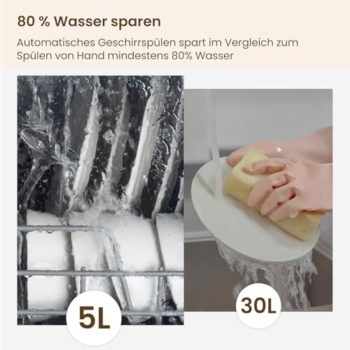 - REDUZIERT DEN WASSERVERBRAUCH UM 75% UND SPART ENERGIE: Dieser Geschirrspüler verbraucht nur 5 L Wasser pro Waschgang, nur 1/4 der beim Waschen von Hand verwendeten Menge; hat eine Energieeffizienzklasse von „F“ und arbeitet mit 900 W, was ihn zu einer großartigen energiesparenden Wahl für jede Familie macht